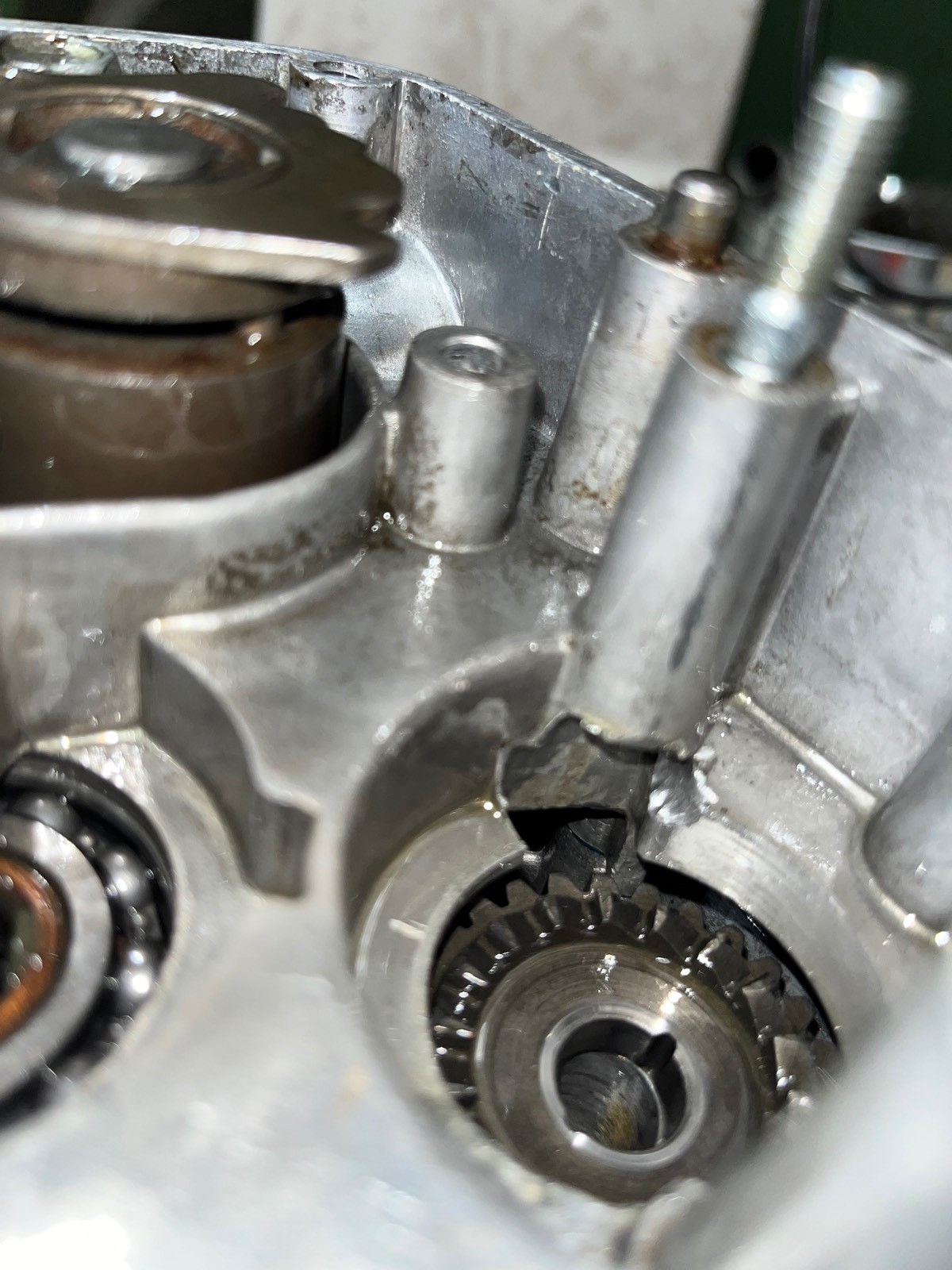 Mir ist in letzter Zeit ab und zu mal der Kickstarter durchgerutscht und ich bin davon ausgegangen, dass es ein abgenutztes Kickstarterrad ist. Jetzt wollte ich natürlich gleich den Motor spalten um es zu tauschen aber ich sehe gerade dass es kaum verschlissen ist, doch am Gehäuse wo die Kickstarterwelle sitzt ist ein kleiner Schaden zu erkennen, liegt es vielleicht daran? Wie gesagt der Kickstarter ist nur manchmal gerutscht. Muss ich ein neues Gehäuse kaufen oder ist das unrelevant?