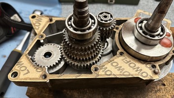 Ich habe nun eine Dünnere Scheibe beim 6000er lager eingesetzt (0,3mm statt 1mm) und eine Möglichst dicke motormitteldichtung verwendet (0,8mm). Jedoch war es zwar danach etwas besser aber immer noch sehr schlecht. Ich kann im neutralen Gang die Abtriebswelle auch nicht mit der Hand festhalten wenn ich die Kupplungswelle per Knarre drehe. Anbei müssten ein paar fotos sein. Die Scheiben zwischen der Festrädern sind auch 2mm, wie angegeben.