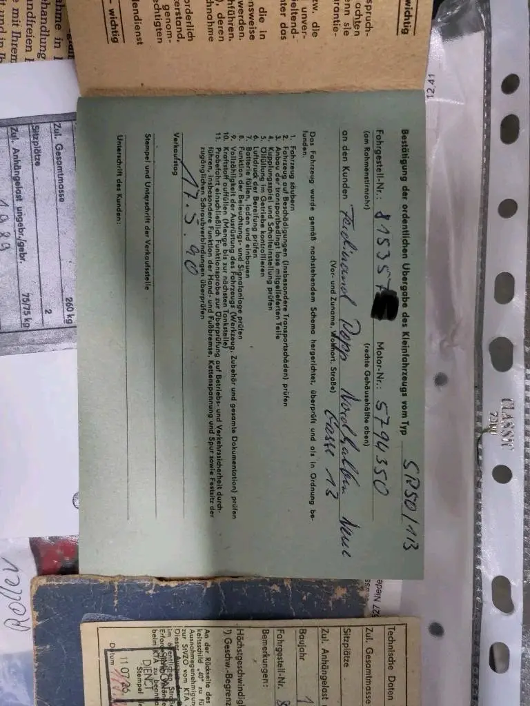 Das komische ist jedoch das der Verkäufer 2. Besitzer ist und 95 den SR von seinem Opa bekommen hat. Es gibt Auslieferungsunterlagen und Quittungen vom Kauf.