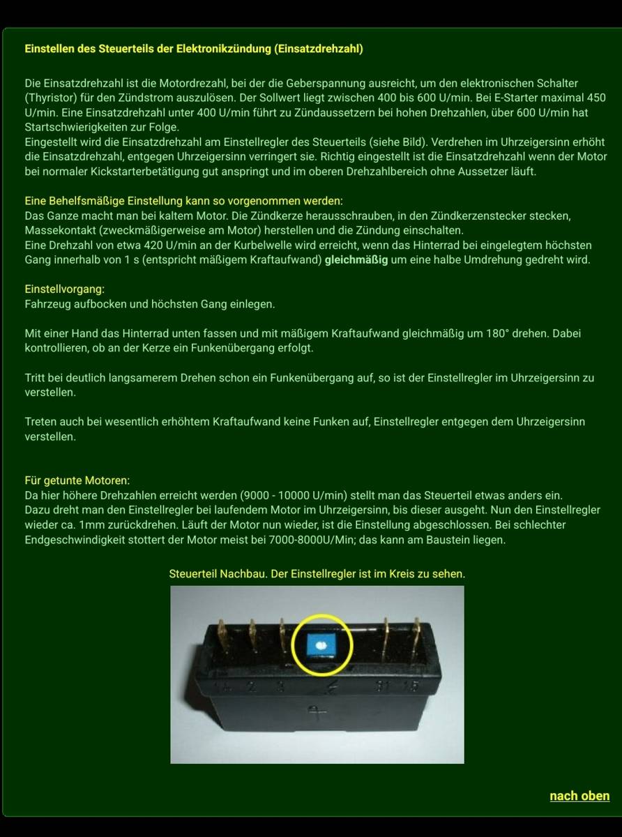 In dem Text steht genau beschrieben wie sich der Motor verhält wenn es falsch eingestellt ist, das deckt sich mit dem was er beschrieben hat. Könnte Zufall sein. Könnte aber auch die Lösung sein.