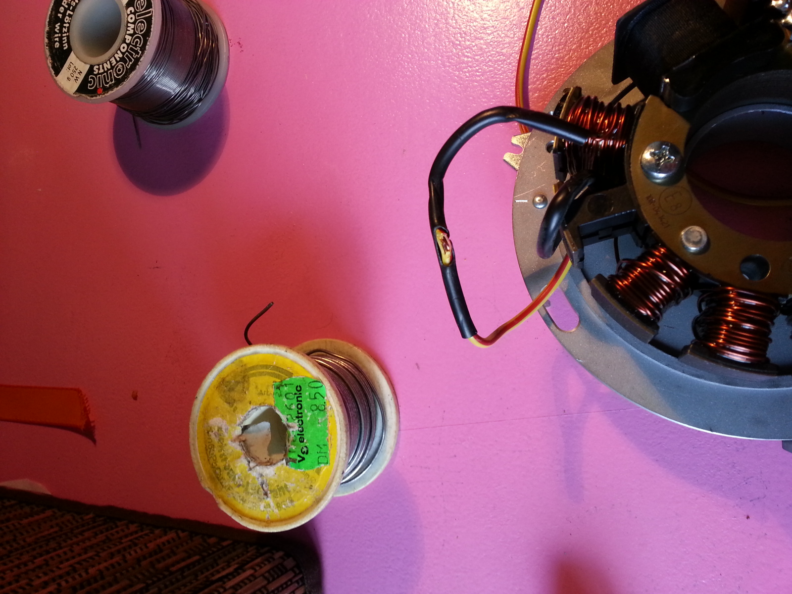 @Enduro82 : Ich bin nur aufgrund eines Denkfehlers (zum Glück! ) auf das durchgescheuerte Kabel gekommen...! Die Lichtspulen haben immer eine Verbindung zur Masse! Leider hatte das gelb-rote Kabel direkt wo es raus geht von der Grundplatte diesen Masseschluß. Daher kam auch nichts beim Scheinwerfer an. Siehe Anhang 4